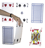 grote speelkaarten omgedraaid opgesteld. De eerste kaart wordt